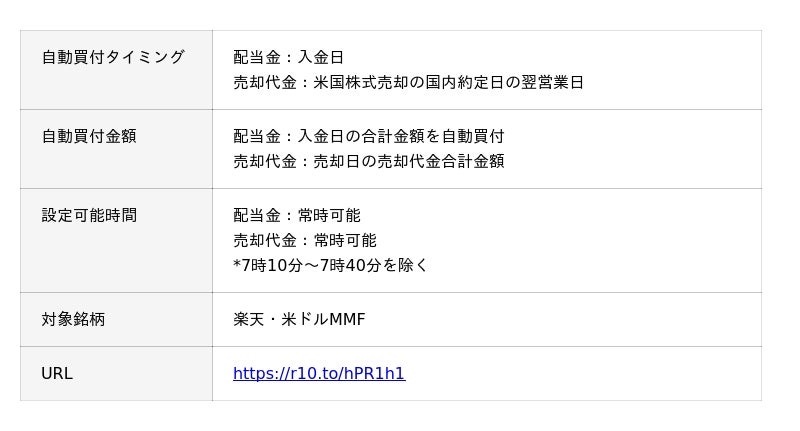 ■楽天証券、米ドル建てMMF 自動買付 サービス概要