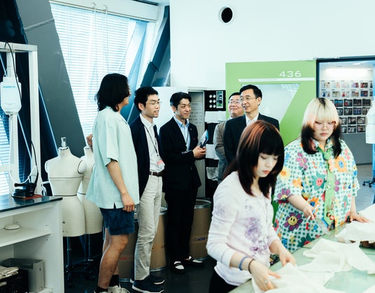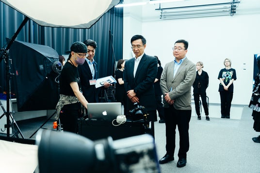 東京モード学園では、パターンメイキングやプロ仕様のフォトスタジオでの授業を見学されました。また学内掲示されている学生作品を見て、レベルの高さに大変驚かれていました。