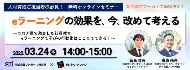 導入実績2000超を誇るeラーニング専門ソリューション企業、株式会社デジタル・ナレッジ(本社:東京都台東区、代表取締役社長:はが弘明)は、経営・組織課題の解決を支援する株式会社ソシオテック研究所様(本社:東京都千代田区、代表取締役:廣川真一)との共催セミナーを2022年2月15日に開催いたしました。