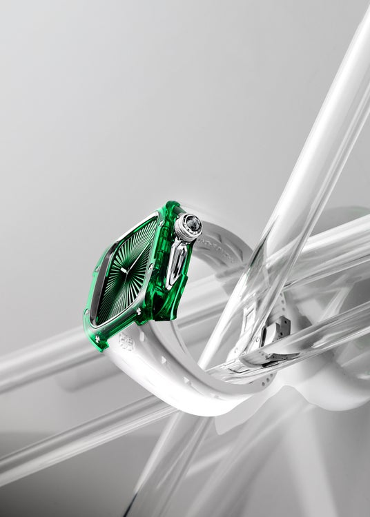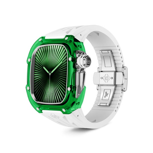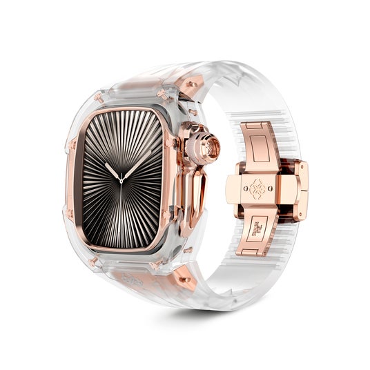 さらに、精密に設計されたファセットが光をダイナミックに反射し、透明感と奥行きを演出。Apple Watch本体のステンレススチールやローズゴールドの美しさを引き立てます。
