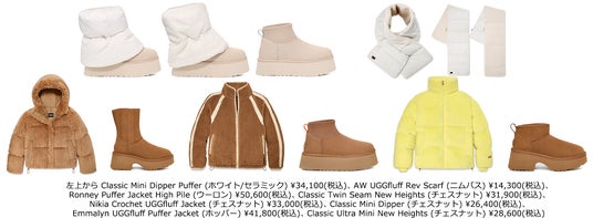 これらの商品はUGG公式サイト( https://bit.ly/3CpdUrf )および、全国のUGG直営店と正規取扱店にてご購入いただけます。※アイテムにより取扱店舗が異なるため、詳細は、フリーダイヤル0120-710-844までお問合せください。