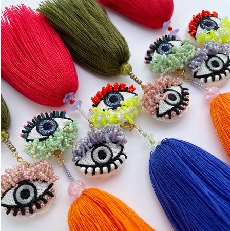 「コーディネートのメインになるアートアクセサリー」をコンセプトに、 何気ない恰好にもそこに合わせるだけで印象深くなるようなデザインで制作。 ポップ・クラシック・モダンなど多面的で 様々な年代の世界の素材パーツをミックスし、バランス感やリズム感を大事にして作りあげる一点モノです。