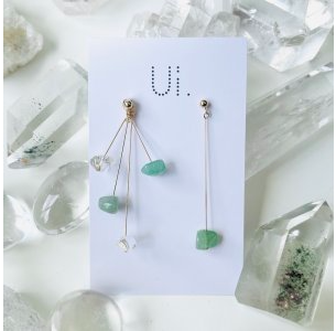 「日常にさりげないアクセントを・・・」どんなシーンでも使いやすく、身につけたときちょっとワクワクするアクセサリー。ui.のアクセサリーは世界でたった一つの美しい天然石を使用しています。天然石のひとつひとつに、色、形に個性があるので、一点物としてのオリジナリティ溢れるデザインが特徴です。
