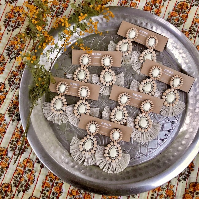 素材、形、色、、様々な組み合わせでいろんなアクセサリーを製作しています。デイリーのアクセントにもドレスアップスタイルにもお使いいただけるような個性的な大人可愛いアクセサリーたち。