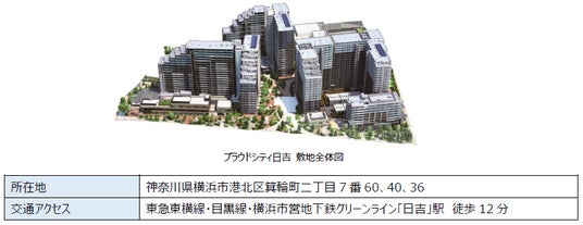 プラウドシティ日吉は当社グループが推進する、「住」「商」「健」「学」の4つの機能を集積させた大規模複合開発です。安心・快適にお住まいいただけるレジデンス棟3棟・総戸数 1,318 戸の分譲マンションであるプラウドシティ日吉レジデンス I~III を中心として、地域密着型商業施設 SOCOLA 日吉(運営中)、サービス付き高齢者向け住宅オウカス日吉(運営中)、街区内には横浜市立箕輪小学校も新設されています。また、エリアのコミュニティ形成を促進するグループ独自の取組みとして、レジデンス棟内のフロアなどを活用してコワーキング・コラーニング活動などの各種イベントやシェアキッチン・子どもの一時預かり、スタジオ、コミュニティカフェなどの運営を行う活動拠点を設けています。