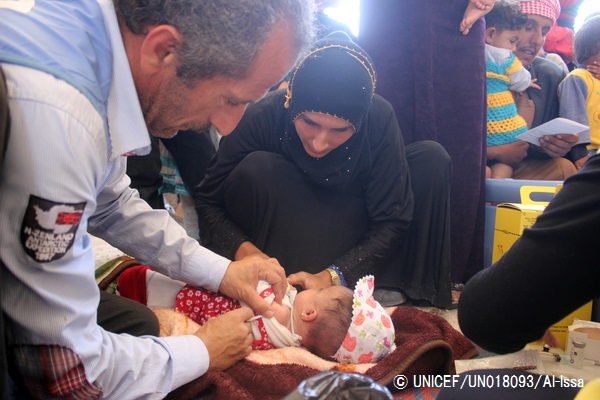 WHOとユニセフは、予防接種キャンペーンを安全に再開できるよう、紛争に関わるすべての当事者に対し、シリア内で続く暴力に終止符を打つよう呼びかけています。