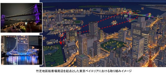 一般社団法人竹芝エリアマネジメント(所在地:東京都港区、代表理事:平地 稔、以下「竹芝エリアマネジメント」)と、一般社団法人竹芝タウンデザイン(所在地:東京都港区、代表理事:小沼 智子、以下「竹芝タウンデザイン」)は、このたび、竹芝地区の更なる水辺活性化に向け、TFHD digital株式会社(本社:東京都渋谷区、代表取締役:兼久 隆行、以下「TFHD digital」)と共に船着場の管理運営に関するDX(デジタルトランスフォーメーション)の試験実装を開始するとともに、東京ポートシティ竹芝を運営する東急不動産株式会社(本社:東京都渋谷区、代表取締役社長:田中 辰明、以下「東急不動産」)および、ウォーターズ竹芝を運営する東日本旅客鉄道株式会社(本社:東京都渋谷区、代表取締役社長:喜㔟 陽一、以下「JR東日本」)とともに、竹芝エリアおよび東京のベイエリアの更なる魅力向上に向けたナイトタイム等のクルーズ企画を新たに開始することをお知らせいたします。
