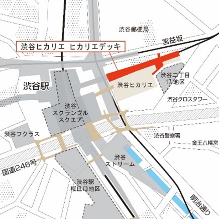 ヒカリエデッキは渋谷ヒカリエの北側、東京メトロ銀座線線路の上部に位置する全長約190メートルの歩行者デッキで、「生活文化の情報発信・活動拠点」、「まちに開かれた憩いの場」となることを目指し、2021年7月15日にオープンしました。