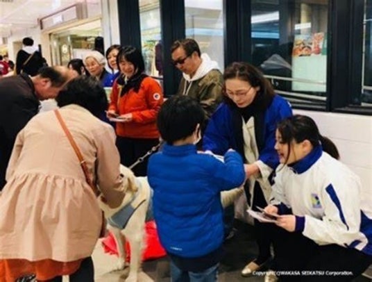 盲導犬を必要とされる方々が助けを借りたくても、実働頭数の不足によりそれが難しい状況にある事実を知り、当社は2003 年より盲導犬育成支援を開始しました。2003年1月には「一縁の eye 基金」を設立し、当社の商品を1袋購入いただくごとに1円を積み立て、盲導犬の育成資金として寄付を行い、これまで盲導犬協会(日本盲導犬協会、関西盲導犬協会)への累計寄付総額は58,610,998円(※1)となりました。この基金を通じた寄付以外にも、多岐にわたる様々な 活動に取り組んでおり、2004 年には盲導犬を題材とした映画「クイール」への協賛。2015 年には盲導犬の一生を題材にしたマンガ「盲導犬ベリー」を販売し、盲導犬育成支援に活用しています。また、4月の最終水曜日に制定されている「国際盲導犬の日」にちなみ当社では、毎年4月を「盲導犬育成支援の強化月間」とし、盲導犬の理解を深める活動を社内外に向けて継続的におこなっています。