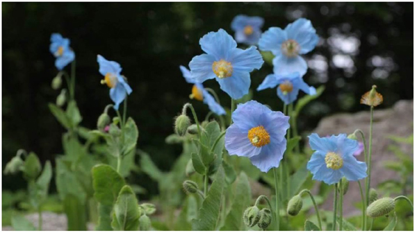ヒマラヤの奥地に生育する高さ1.6mにもなる多年草です。澄み切った青空のような美しい花が咲きます。標高3,000mを超す高山にしか見られないうえ、容易に近づくことができないヒマラヤの奥地に咲くため、“幻の花”として知られています。1990年に大阪で開催された「国際花と緑の博覧会」において紹介され、一躍有名になりました。屋外(ロックガーデン)と屋内(ガラス室)2か所で植栽しており、屋外は6月上旬までお楽しみいただける見込みです。