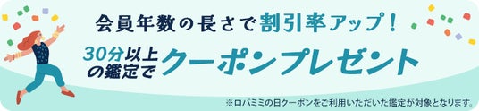 すべての会員様に1回の鑑定で最大2,000円分の割引になる“ロバミミの日クーポン”をプレゼントいたします。クーポンはキャンペーン期間中にお1人様1回限り受け取ることができます。キャンペーン詳細ページ内の「クーポンをGETする」ボタンよりクーポンをお受け取りください。