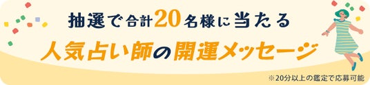 キャンペーン期間中、対象の占い師18名のうち誰か1人の鑑定を受けていただくと、抽選で20名様に占い師から【あなただけの開運メッセージ】をプレゼントいたします。応募方法は、対象の占い師を申し込みする際に「応募する」にチェックを入れるだけの簡単操作で完了です。お気軽にご参加ください。