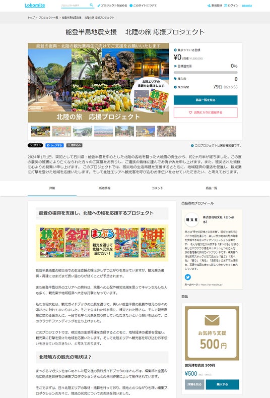 4.昭文社も社会貢献性のあるクラウドファンディングを自主企画。プロジェクト第一弾として、令和6年能登半島地震の支援を目的とした「北陸の旅 応援プロジェクト(後述)」をスタートします。