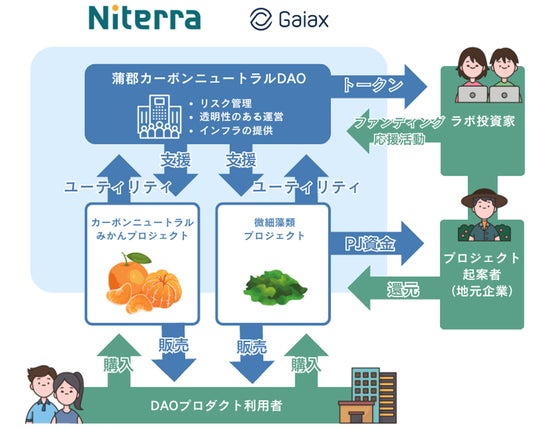 ガイアックスが協力し、Niterraグループ 日本特殊陶業株式会社が目指す「地域CCUプロジェクト」では、DAO(自律分散型組織)の仕組みを活用し、地域のカーボンニュートラル化と経済循環の実現を目指します。