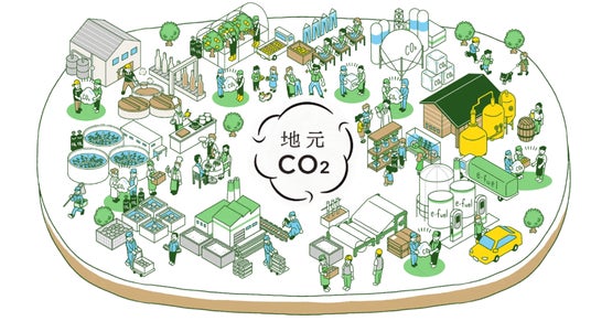 具体的には、工場など各種生産活動から発生する二酸化炭素(CO2)を回収して、また別のかたちで活用することを目指します。たとえば工場で出たCO2を集めて、ハウスみかんの光合成に役立てることで「地元CO2で育てたみかん」ができます。