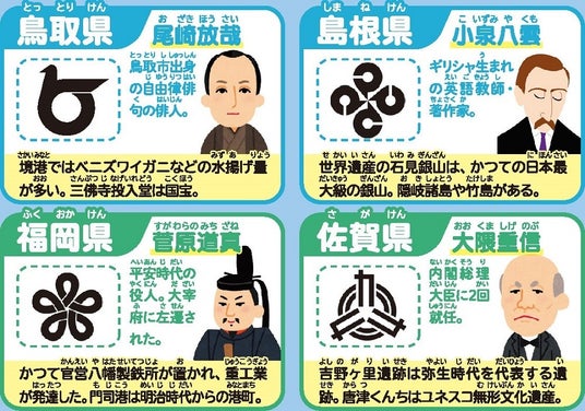 ◆都道府県データ欄には都道府県章、ゆかりの人物、特徴を記載