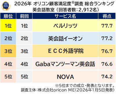 オリコン株式会社(本社:東京都港区 代表取締役社長:小池 恒、略称:オリコン)は、グループ会社である株式会社oricon MEが、実際のサービス利用者を対象に第三者の立場で実施した、『英会話教室』についての顧客満足度調査の結果を、2026年1月5日(月)14時に「オリコン顧客満足度(R)」公式サイト内にて発表いたしました。