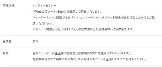 生き残りの1手段として、共同配送に注目している方も多くいらっしゃると思います。そこで!本セミナーでは、“選ばれる”戦略として共同配送を実現したクライアントと当社がディスカッションを実現!!!選ばれる荷主企業はどんな戦略を取っているのか?