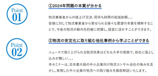 2024年問題を生き抜く方法を学ぶチャンスです。今、多くの荷主企業が先の見えない物流のコストアップに直面しています。今まで荷主企業はどこを“選ぶか”に重点を置いていました。しかし、今後は物流事業者にどう“選ばれるか”という戦略を練ることが求めれます。
