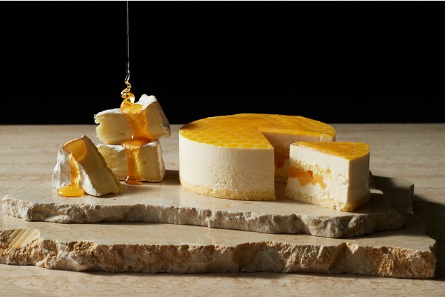 クリーミーなカマンベールムースと相性抜群の蜂蜜ムースに、蜂の巣をイメージした蜂蜜ジュレをあしらった2層のハニーチーズケーキ。アクセントのアプリコットがそれぞれの味を贅沢に引き立てます。