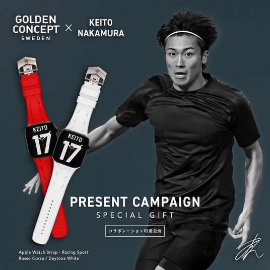 スウェーデン発の高級Apple Watchケースブランド「GOLDEN CONCEPT(ゴールデンコンセプト)」は、ブランドアンバサダーを務めるサッカー日本代表・中村敬斗選手とのコラボレーション企画を本格始動いたします。その第一弾として、プレゼントキャンペーンを本日よりスタートしました。