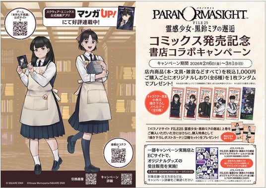 日本出版販売株式会社(代表取締役社長:富樫 建、略称:日販)は、株式会社スクウェア・エニックスが発売するゲーム「パラノマサイト FILE23 本所七不思議」の公式スピンオフコミカライズ作品『パラノマサイト FILE25 霊感少女・黒鈴ミヲの邂逅 上巻』発売を記念して、2026年2月6日(金)より全国261書店にて書店コラボキャンペーンを開催します。