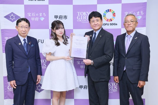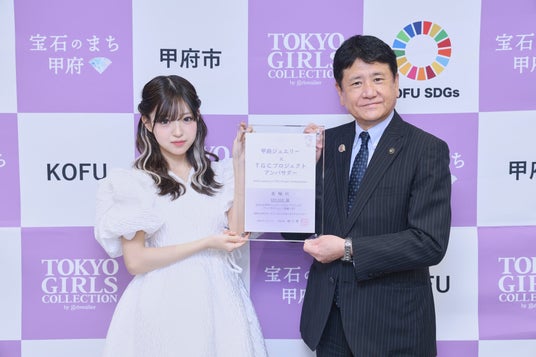 東京ガールズコレクション実行委員会(企画/制作:株式会社 W TOKYO)は、「宝石のまち甲府」を世界に向けて発信することを目的に、甲府市と協働し『甲府ジュエリー×TGCプロジェクト』を発足、今年で3年目となりました。この度、新たな取り組みとして当プロジェクトのアンバサダーに、山梨県在住の現役女子高生で、SNS総フォロワー数480万人超えを誇るティーンのカリスマMINAMIの起用が決定しました。起用に際し、7月17日(水)に甲府市役所にて記者発表会のなかで委嘱状を授与されました。
