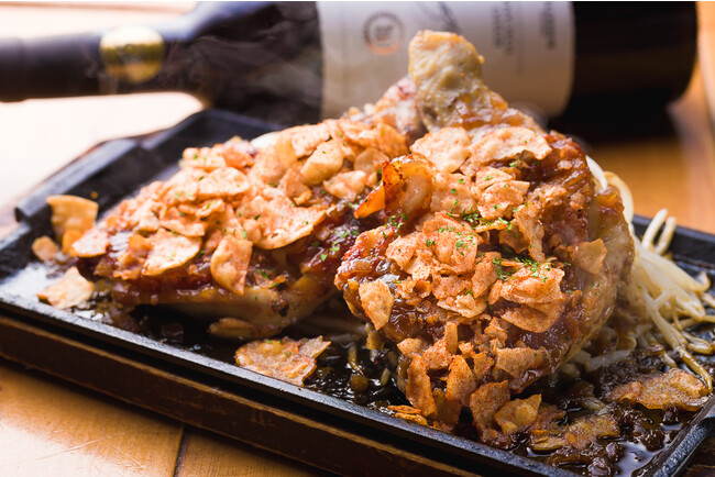 ■新メニュー ジカビヤチキン 税込1,499円豪快に焼き上げた骨付きのチキンは、新名物として早くもご好評いただいております。選べる味付けは【ノーマル(ローズマリー/マスタード)・スパイシーザクザクチキン・スノーチーズチキン】の3種類ご用意しております。お好みに合わせてご注文ください。