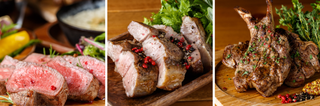■牛ランプ肉 税込1,485円■岩中豚の肩ロース 税込1,428円■仔羊のラムチョップ 税込988円