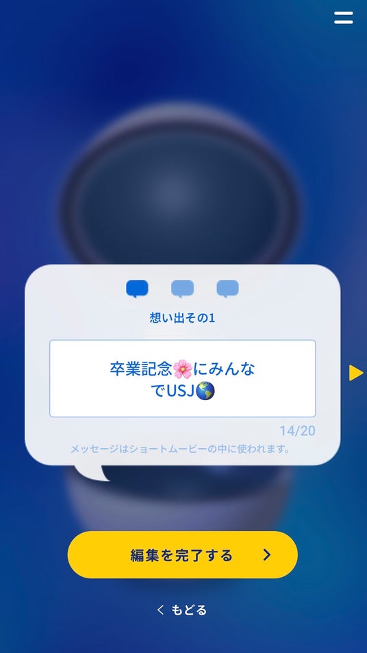 本サービスにて新登場となる『NO LIMIT! タイムカプセル』は、ユニバーサル・スタジオ・ジャパンが新規開発したパークで初めて実施するデジタル上の動画制作サービスです。パークでしか味わえない“超興奮”体験が映った写真とメッセージを刻み、自分たちだけの特別なショートムービーにすれば、まるで“タイムカプセル”のように想い出がよみがえり、大切な人とパークの想い出を共有することができます。