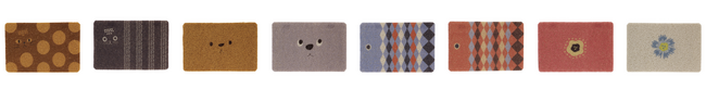 左から、キャット(ブラウン、チャコール)/アニマル(ブラウン、グレー)/フィッシュ(ブルー、レッド)/フラワー(ピンク、クリーム)