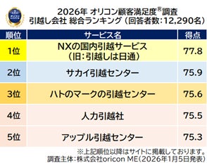 オリコン株式会社(本社:東京都港区 代表取締役社長:小池 恒、略称:オリコン)は、グループ会社である株式会社oricon MEが、実際のサービス利用者を対象に第三者の立場で実施した『引越し会社』の顧客満足度調査の結果を、2026年1月5日(月)14時に「オリコン顧客満足度(R)」公式サイト内にて発表いたしました。ランキングの結果は、下記の通りとなりました。