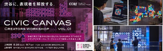 シビック・クリエイティブ・ベース東京[CCBT]では、ミッションである「Co-Creative Transformation of Tokyo」に基づき、「発見」「共創」「開発」「連携」を体現するため、国内外の分野を超えた多様なパートナーと連携して事業を実施し、創造的な社会モデルを提示していく連携事業「CCBTx」を実施しています。「CIVIC CANVAS」は、この一環として、渋谷桜丘エリアに2023年11月竣工した複合施設「Shibuya Sakura Stage」のメディアファサードを舞台としたワークショップ&上映プログラムです。