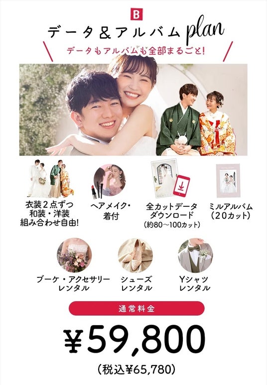 写真工房ぱれっとのフォトウエディングは、スタジオ撮影・ロケーション撮影と豊富なプランをご用意しております。