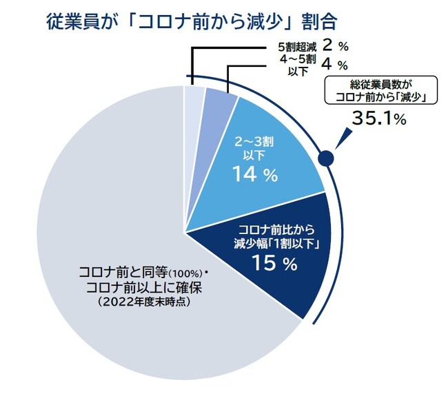 企業の3割超で従業員「コロナ前から減少」 非正社員では減少幅「5割超」が1割
