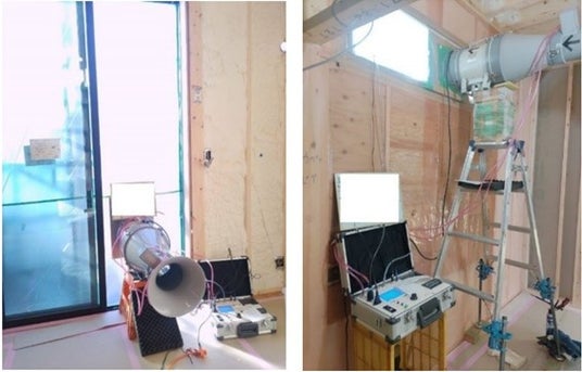 一般的な「気密測定」は、室内の壁にパネルやクロスが貼られ住宅の内装が仕上がった段階で行われますが、この度の「気密測定」は、日本アクアが提供する現場吹付断熱材「アクアファーム」を施工した直後に実施します。「気密測定」は基準の C 値を 0.6c平方メートル /平方メートル とし、基準値に達しない場合は断熱材の吹付量を増やすなどの対応をしたのちに再測定し基準の C 値を保証するほか、「気密性能試験結果報告書」として住宅の引き渡し時に建築主に向け発行します。建築主は、基準の C 値が担保された高気密の住宅に住むことで、光熱費削減効果などのメリットを享受できます。