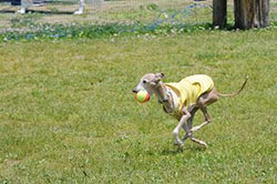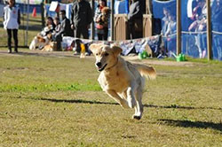 「よ~いドン」でスタートして、30m先のゴールラインをワンちゃんが通過するまでのタイムを競います。ボールやフリスビーを投げたり、一緒に走ることもできる人気の競技です。