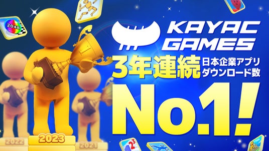 株式会社カヤック(本社:神奈川県鎌倉市、代表取締役 CEO:柳澤 大輔、以下カヤック)は、大手モバイルデータ分析プロバイダーのdata.ai (旧App Annie)が集計した、2023年の世界アプリダウンロード数(iOSおよびGoogle Play)において、日本企業として1位を獲得したことをお知らせいたします(※1)。カヤックは、2021年(※2)、2022年(※3)でも日本企業として1位を獲得しており、3年連続の1位獲得となりました。