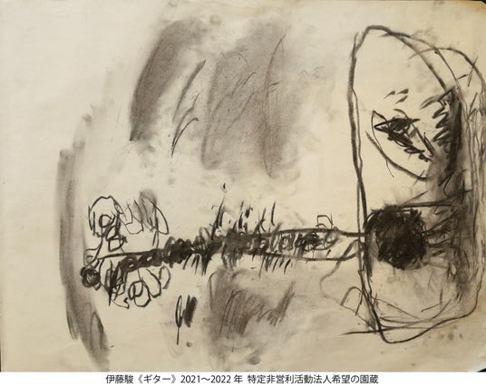 木炭を使用して、動物やギターなど自らが興味関心のあるものを自由に描く。力強く勢いのある線に、指による柔らかなぼかしを加えることで、躍動感のある表現となっている。代表的な参加展覧会として、「LoVE GifTed 三重の荒ぶるアーティストたち展」(2023年、三重県文化会館ギャラリー)などがある。