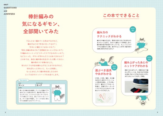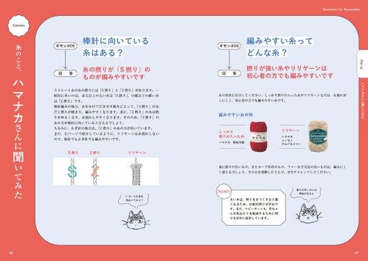 さらに、老舗毛糸メーカーのハマナカさんにもご協力いただき、気になる糸の扱い方や保管方法、便利な道具についても詳しく掲載。多種多様な編み針から適した針を選ぶ方法も解説します。