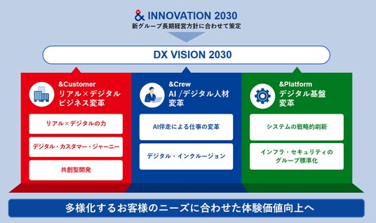三井不動産株式会社(本社:東京都中央区、代表取締役社長 植田俊)は、今年4月に公表した新グループ長期経営方針「& INNOVATION 2030」に基づき、2030年を見据えた新たなグループDX方針として、「DX VISION 2030」を策定いたしました。「& INNOVATION 2030」における事業戦略として、1.コア事業の更なる成長、2.新たなアセットクラスへの展開、3.新事業領域の探索・事業機会獲得を掲げており、DXは戦略を支えるインフラの1つに位置付けられています。