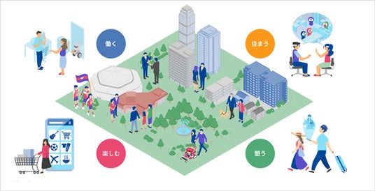 オフィス、商業施設、スポーツ・エンターテインメント、住宅、ホテル、ロジスティクスなど三井不動産グループのリアルの場におけるお客様との接点やネットワークを活かしたデジタル・プラットフォームを強化し、リアルの場の価値の最大化を実現します。