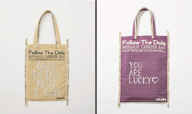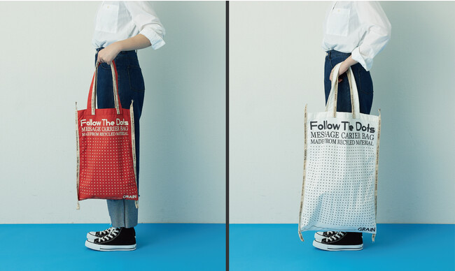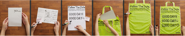 バッグ本体にプリントされた点と点をつないで、メッセージを書くことができるアイテムです。