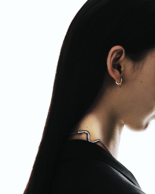 今回のコレクションでは、クラシックで繊細なフープピアス<Liz Huggies>のマットゴールドとマットシルバー、ゴールドとシルバーの2素材をご用意。