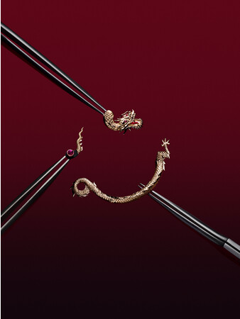貴金属に刻まれたディテールは、著名なスイス人彫金師ディック・スティーンマンが約2週間かけて完成させたもの。これにより、「タンブール オペラ オートマタ」に比類なきレベルのレリーフ効果が生れています。ピンクゴールドのドラゴンは、細かいディテール──ルビーの鋭い目、エングレービングとサンドブラストによる鱗などにいたるまで、その特徴が表情豊かに表現されています。それゆえに、変面師の面からドラゴンが文字通り飛び出し、口を開けて時刻を表示しているように見えるのです。