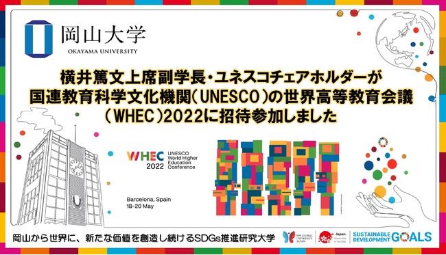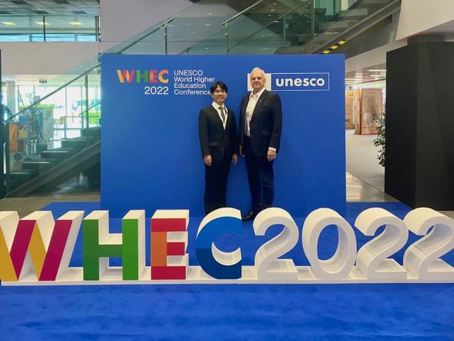 2022年5月18日~20日、国連教育科学文化機関(UNESCO)の世界高等教育会議(WHEC: World Higher Education Conference)2022がスペイン・バルセロナにある国際会議場フィラ・デ・バルセロナ(Fira de Barcelona)で開催され、本学から横井篤文上席副学長(特命(グローバル・エンゲージメント戦略)担当)・ユネスコチェアホルダーが現地にて招待参加しました。1998年、2009年に続き第3回目となる本会議はハイブリット形式で開催され、対面参加については招待制に限定される中、世界130ヶ国から国連、国際機関、政府、大学、企業、非営利団体の関係者及び学生ら約1,800人が集まりました。