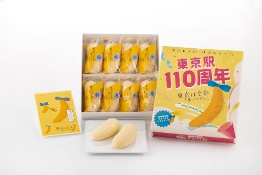 東京土産の東京ばな奈が、赤レンガ模様で110周年をお祝い。新幹線が駆け抜ける特別デザインです。しかも、東京ばな奈オリジナルステッカー付です。