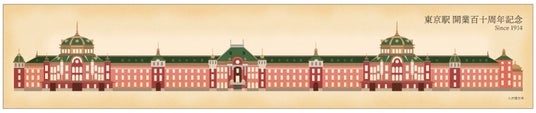 限定販売500 枚!! 東京駅開業 110 周年を記念して、マフラータオルに丸の内駅舎の全景をセピア風に仕上げました!
