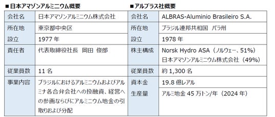 ※1︓ブラジルのアマゾン地域に豊富に賦存するボーキサイトおよびアマゾン水系の水力発電を利用して、アルミナ精製とアルミニウム製錬の一貫工場を建設、操業する日本とブラジルの経済協力資源プロジェクト