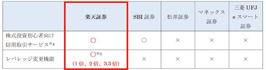※5:「らくらく信用(TM)」は、1倍のみ。信用取引口座に移行後、レバレッジ変更可能